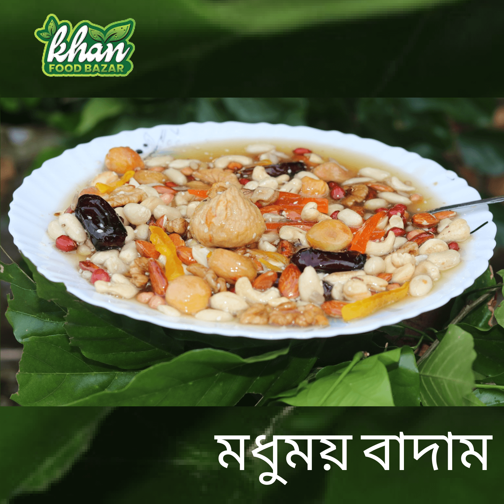 মধুময় বাদাম হল এক প্রাকৃতিক, স্বাস্থ্যসম্মত এবং স্বাদে পরিপূর্ণ খাবার, যা আপনার প্রতিদিনের স্ন্যাকিং-এর জন্য আদর্শ। শুদ্ধ মধুর সুমিষ্টতা এবং প্রিমিয়াম মানের বাদামের পুষ্টিগুণ একত্রিত করে তৈরি করা হয়েছে এই অনন্য খাবারটি। এটি শুধু মুখরোচকই নয়, স্বাস্থ্যকর জীবনযাত্রার অংশ হিসেবে এটি অসাধারণ পুষ্টিমূল্যও প্রদান করে।